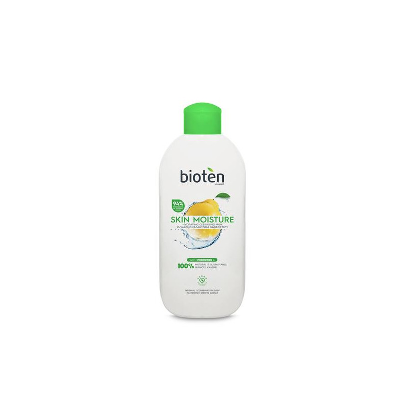 Το ενυδατικό γαλάκτωμα καθαρισμού bioten για Κανονικό/Μεικτό δέρμα με 94% συστατικά φυσικής προέλευσης, είναι εμπλουτισμένο με 100% φυσικό εκχύλισμα Κυδωνιού, βοηθά στη διατήρηση της φυσικής υγρασίας στο δέρμα ενώ διατηρεί την επιδερμίδα απαλή. Τα Πρεβιοτικά που περιέχονται βοηθούν στη διατήρηση της ισορροπίας της χλωρίδας του δέρματος προάγοντας την υγιή εμφάνισή του. Το HYDRO NUTRIENT, ένα προηγμένο ενυδατικό σύμπλεγμα που συνδυάζει την αγνότητα των φυσικών συστατικών με τη δύναμη της επιστήμης, αποτρέπει την αφυδάτωση του δέρματος ενώ διατηρεί μία αίσθηση απαλότητας και άνεσης.